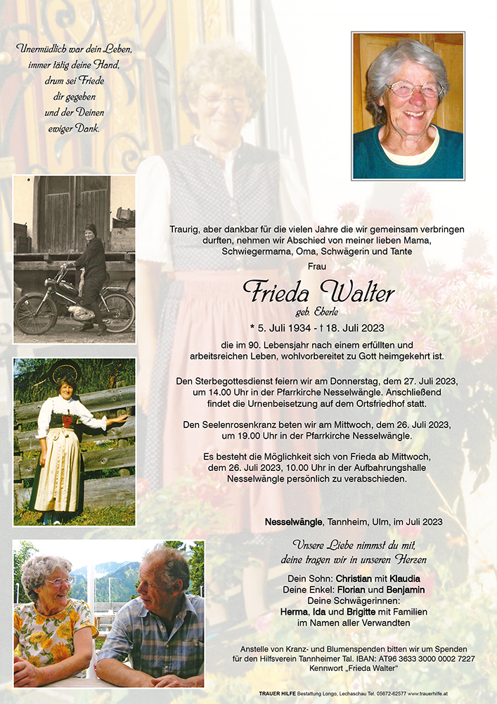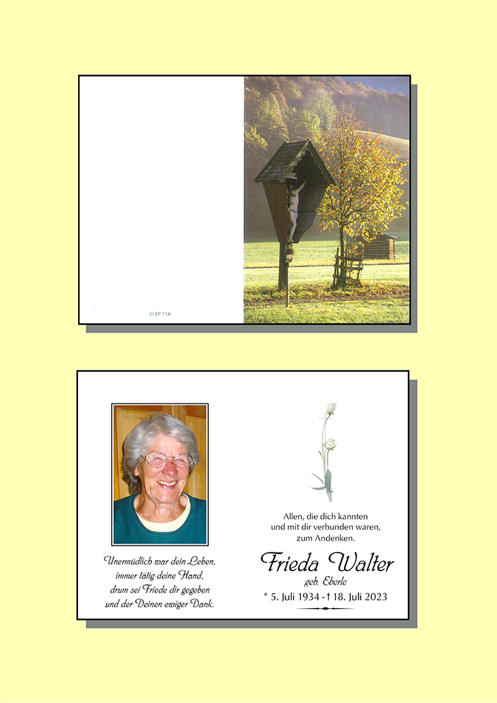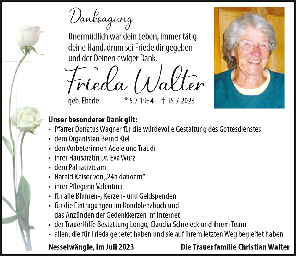 mit Frieda verlieren wir einen Menschen, den wir sehr schätzen durften. Wir wünschen Euch allen viel Energie, Zeit und Geduld, um diesen schmerzlichen Verlust zu verarbeiten. Frieda wird mit Freude und Liebe von Gottes offenen Armen empfangen werden.
