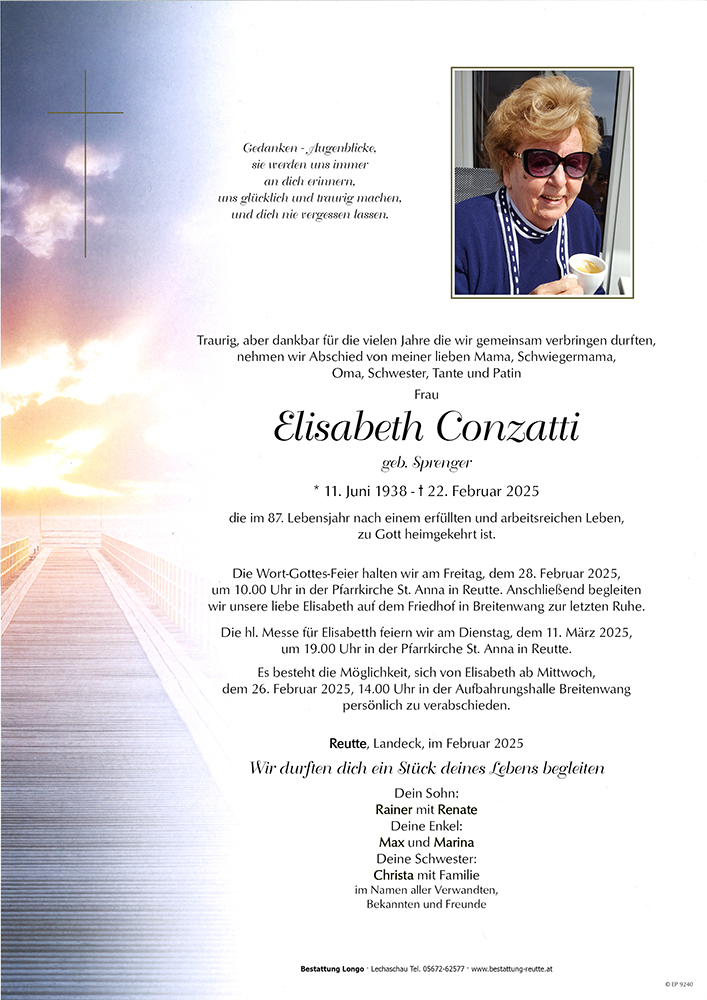 Ich werde Tante Elisabeth, meine Firmpatin, stets in guter Erinnerung behalten.