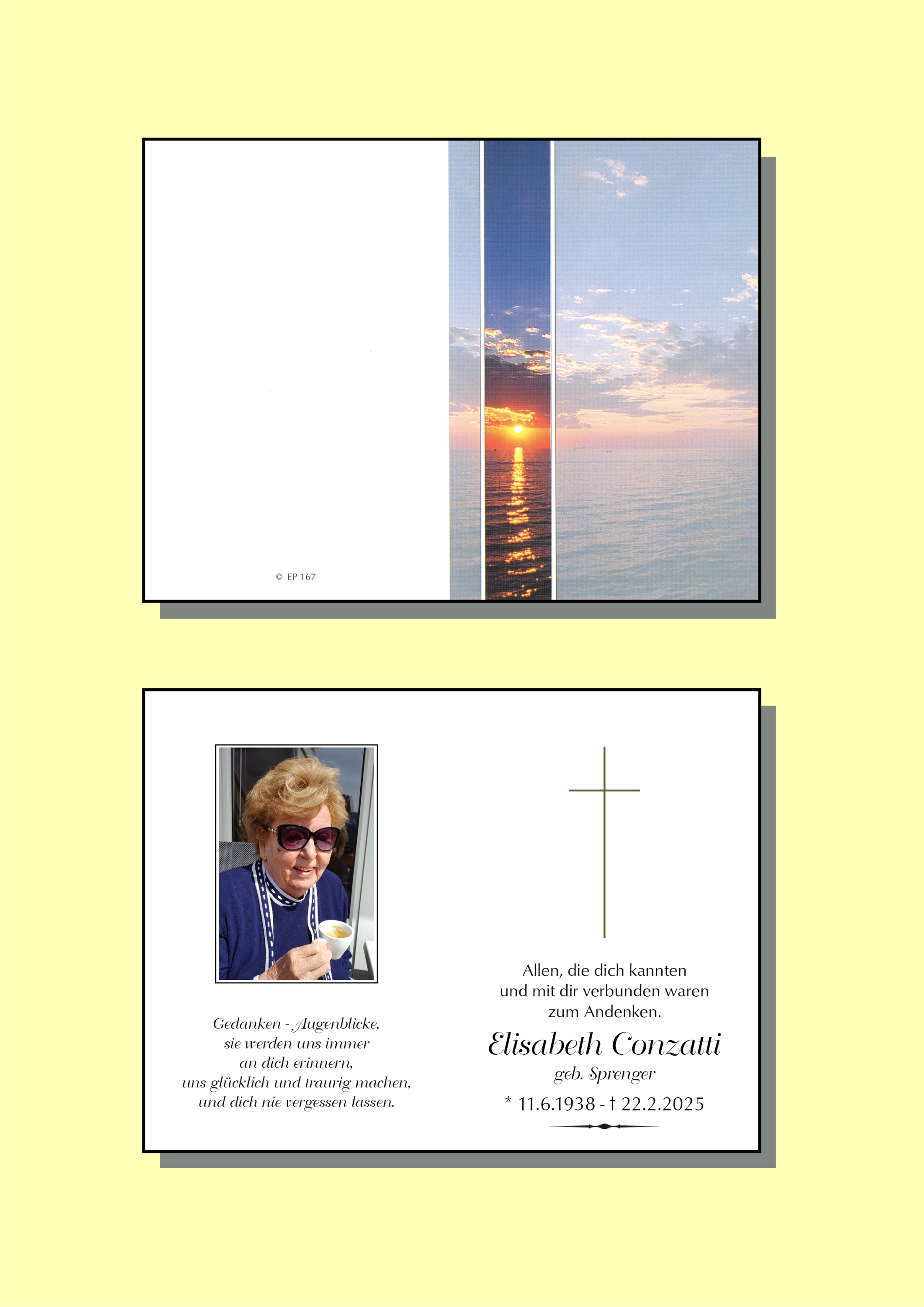 Wie es auf Tante Elisabeths Parte steht- Gedanken-Augenblicke, sie werden uns immer an dich erinnern,...