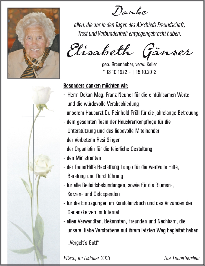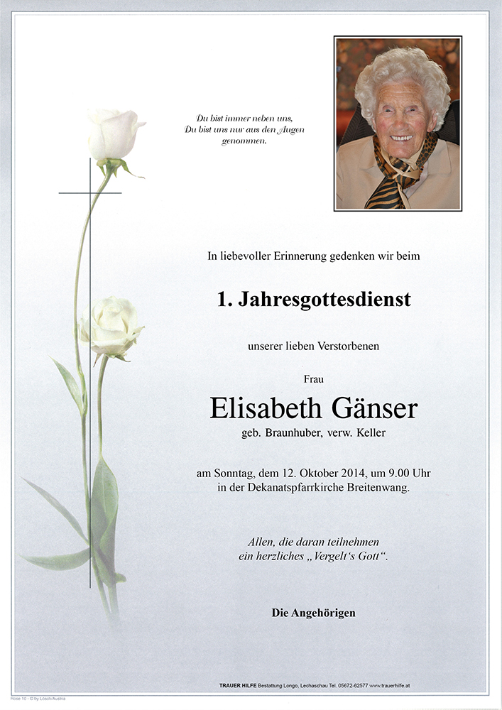 Kondolenzbuch für Elisabeth Gänser