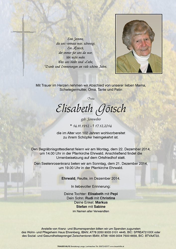 Kondolenzbuch für Elisabeth Götsch