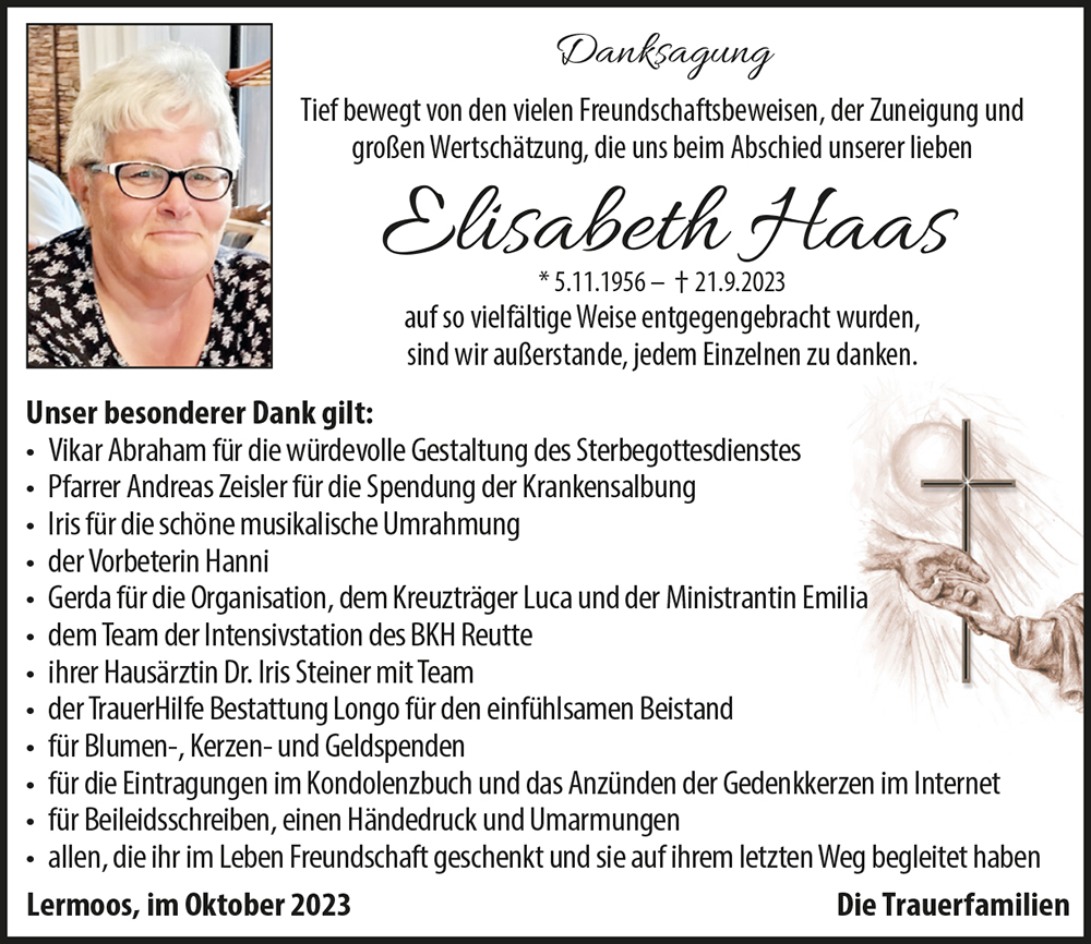 Ich möchte euch auf diesem Wege mein aufrichtiges Beileid entbieten. Es ist immer schwer viel zu früh einen lieben Menschen zu verlieren. Was bleibt sind die Erinnerungen. Mögen eure schönen Erinnerungen an eure liebe Elisabeth euch in der schweren Zeit der Trauer und des Loslassens Kraft und Trost spenden. Ich kenne Elisabeth als sie noch bei der Post arbeitete und werde mich immer an ihre liebe und freundliche Art erinnern.