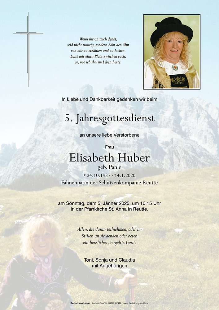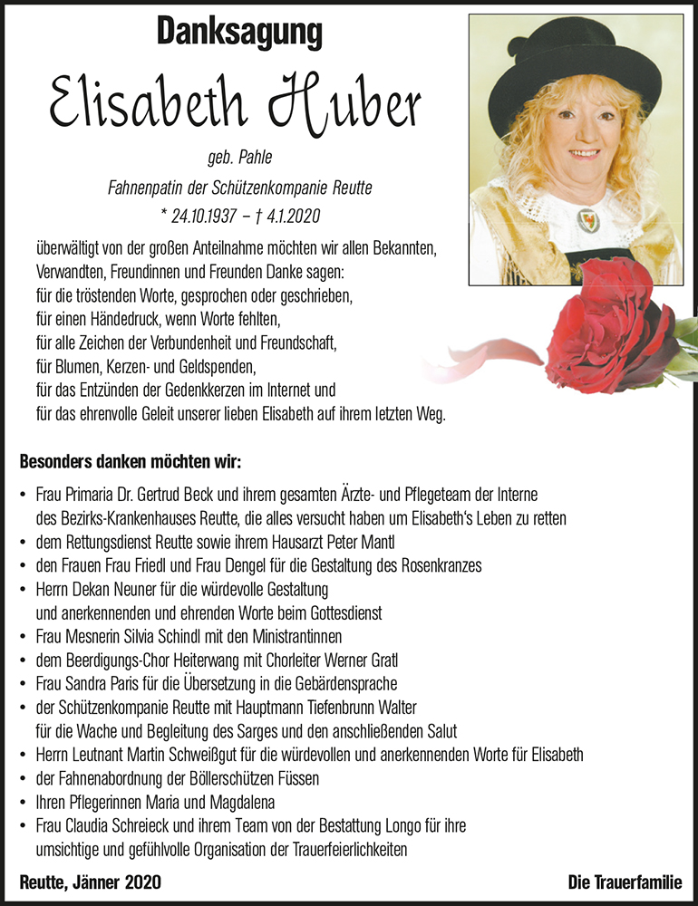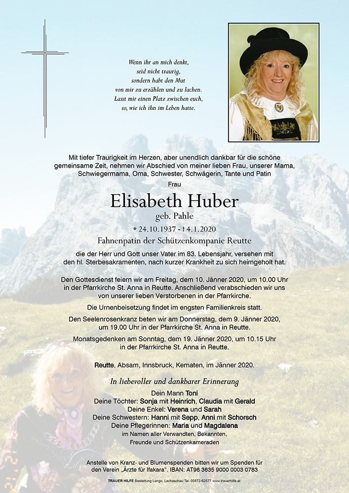 Kondolenzbuch für Elisabeth Huber