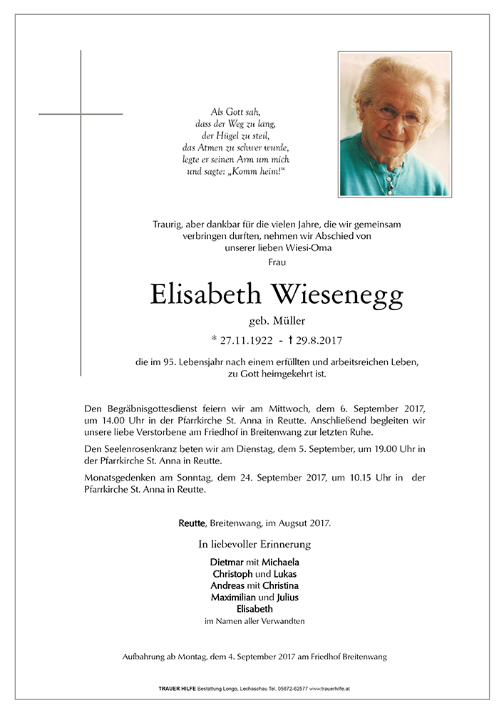 Wir sollen nicht trauern, dass wir die Toten verloren haben, sondern dankbar dafür sein, dass wir sie gehabt haben, ja auch jetzt noch besitzen: denn wer heimkehrt zum Herrn, bleibt in der Gemeinschaft der Gottesfamilie und ist nur vorausgegangen.