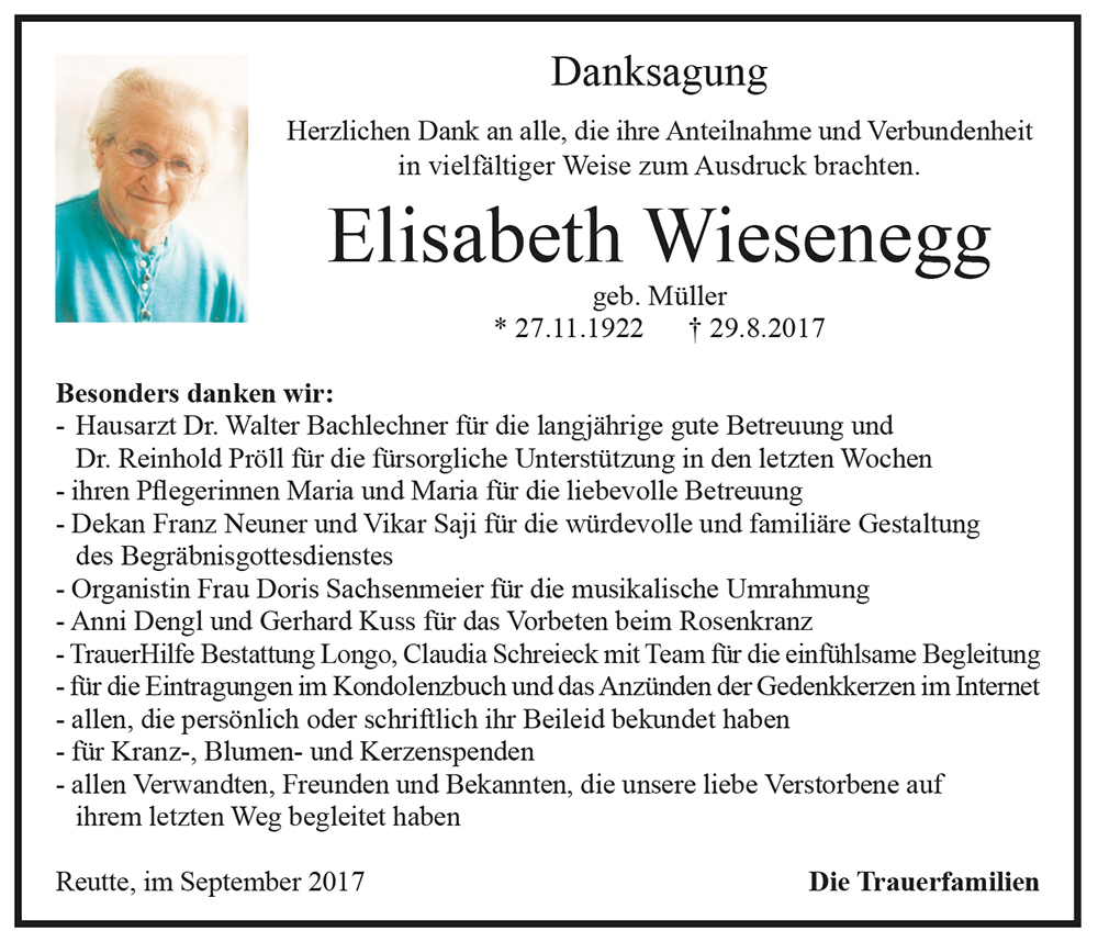 Aufrichtige Anteilnahme entbieten Marianne und Wolfi