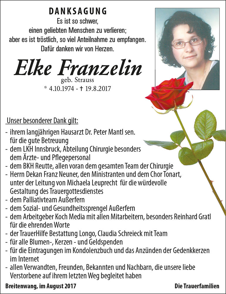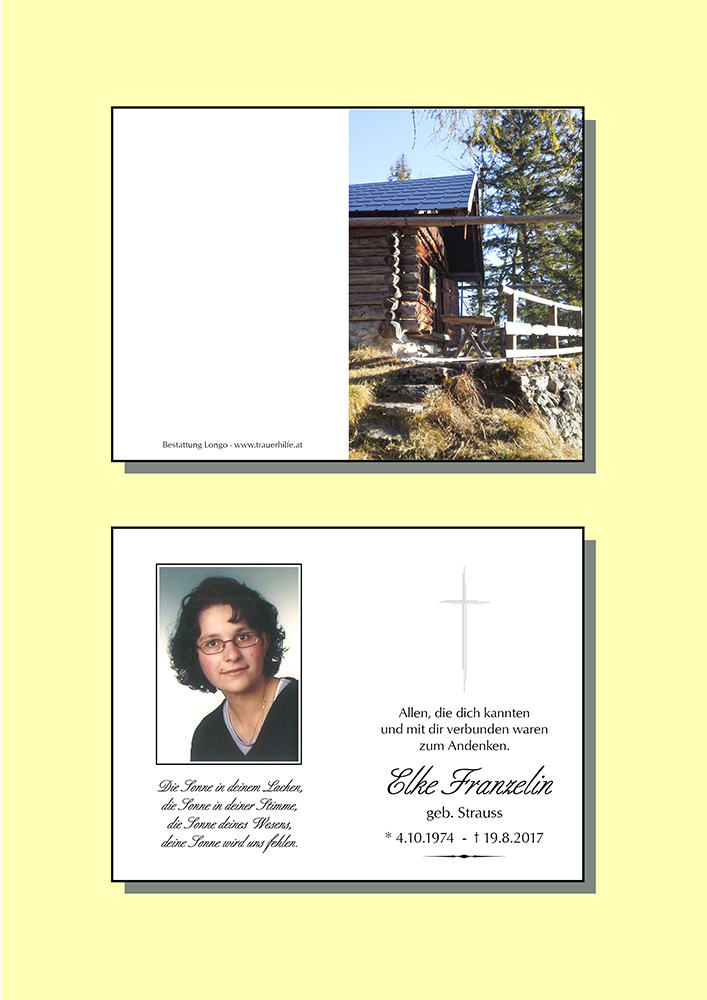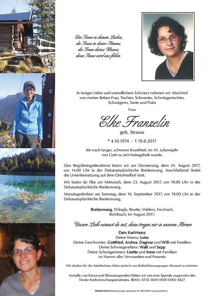 Liebe Familie Franzelin, ein großes Beileid ich wünsche euch viel glück und schöne zeit