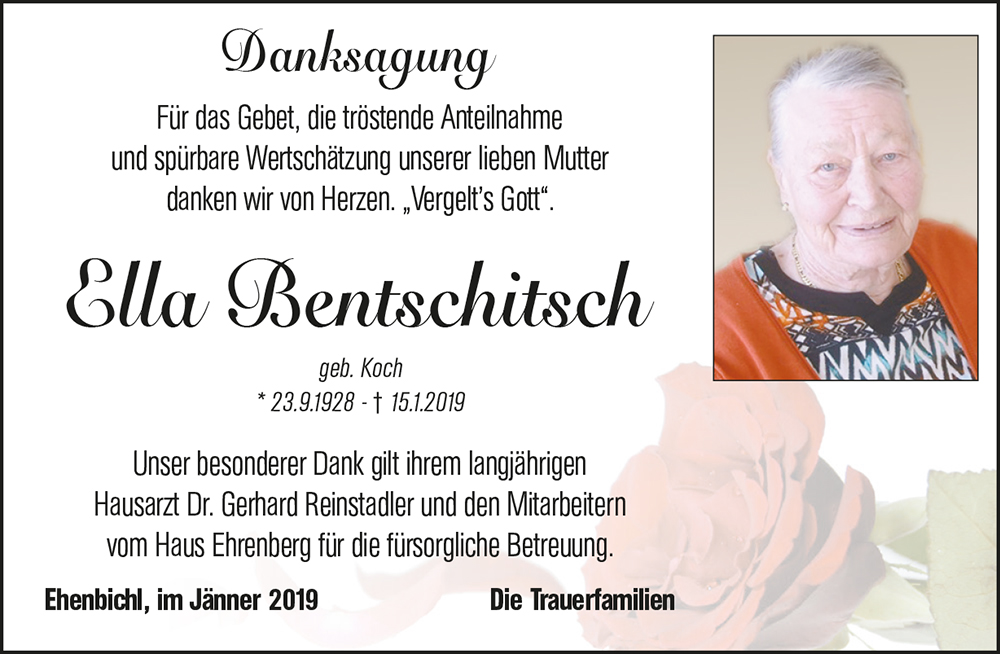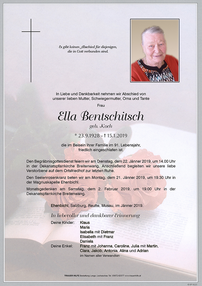 Kondolenzbuch für Ella Bentschitsch