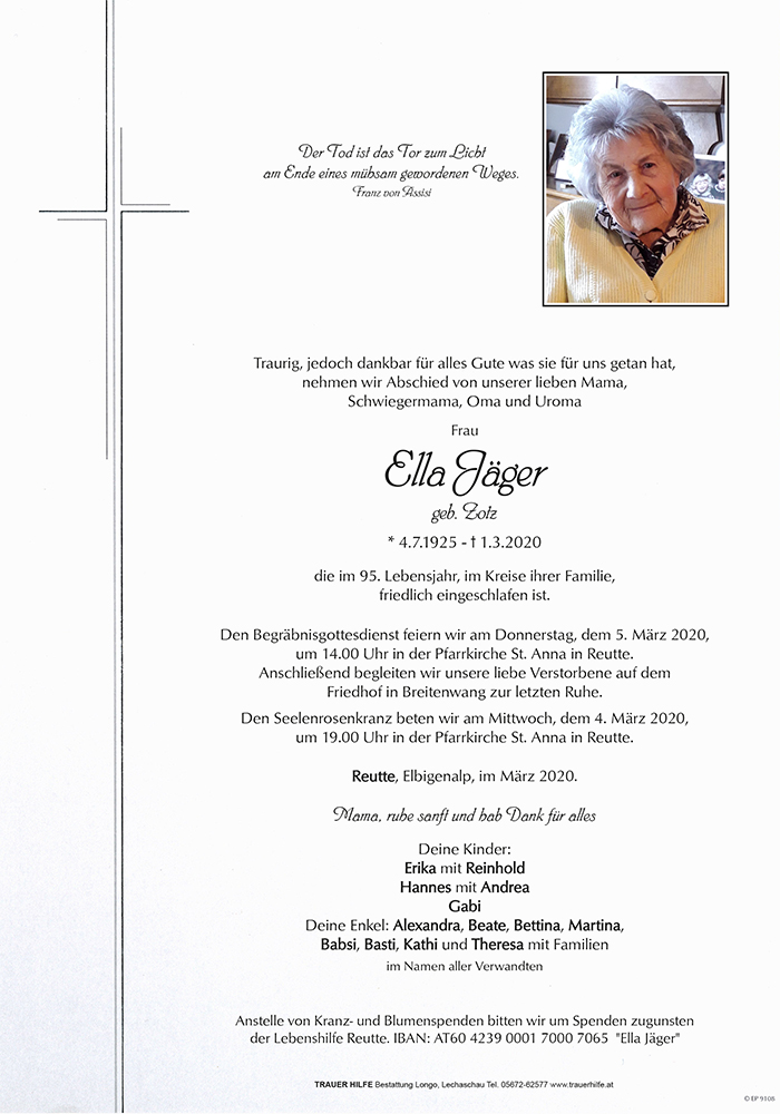 Kondolenzbuch für Ella Jäger