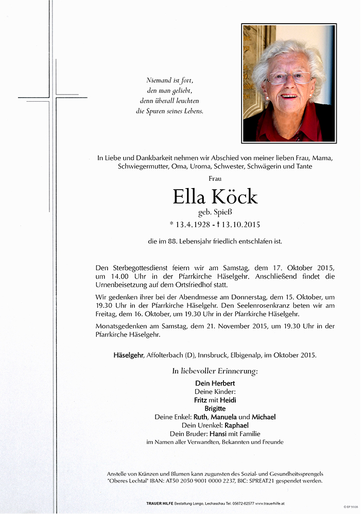 Kondolenzbuch für Ella Köck