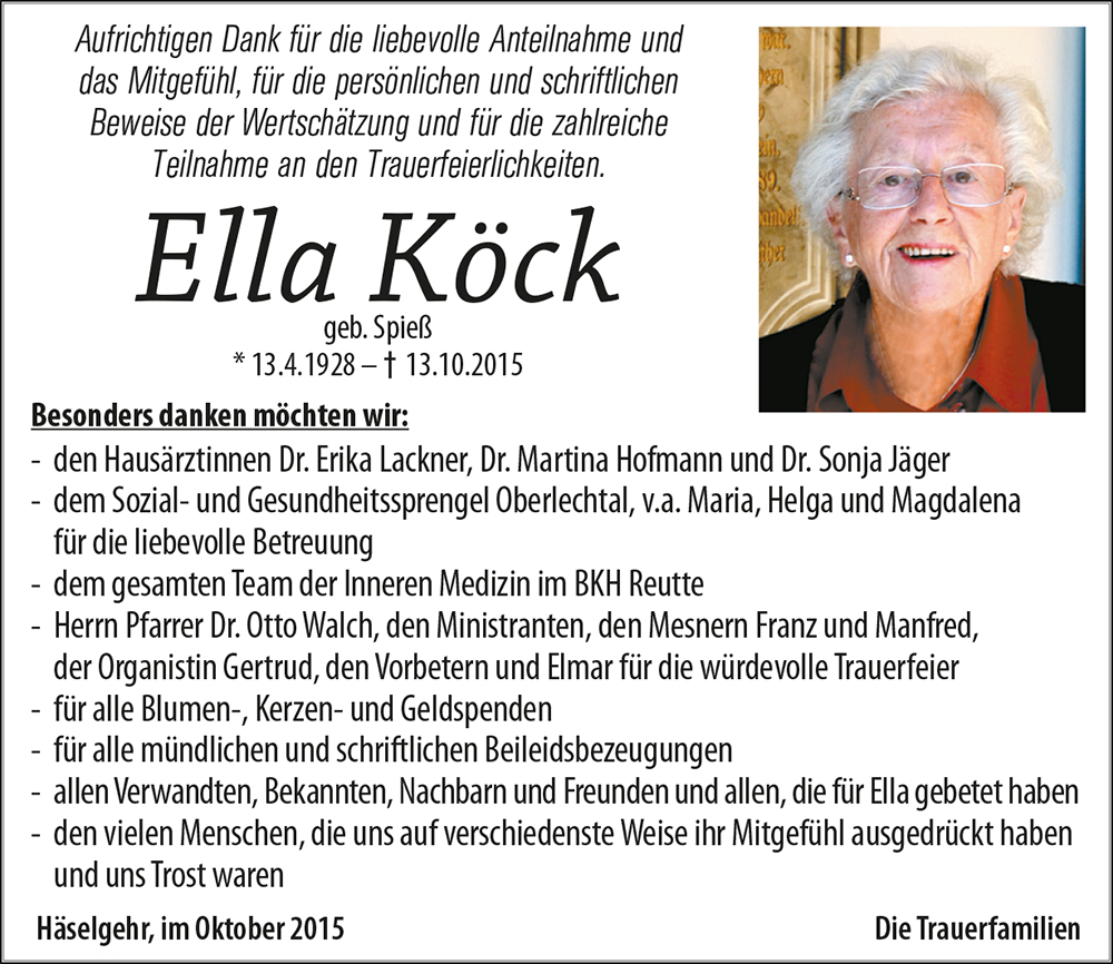 Von Fritz habe ich gerade erfahren, dass Ella verstorben ist.