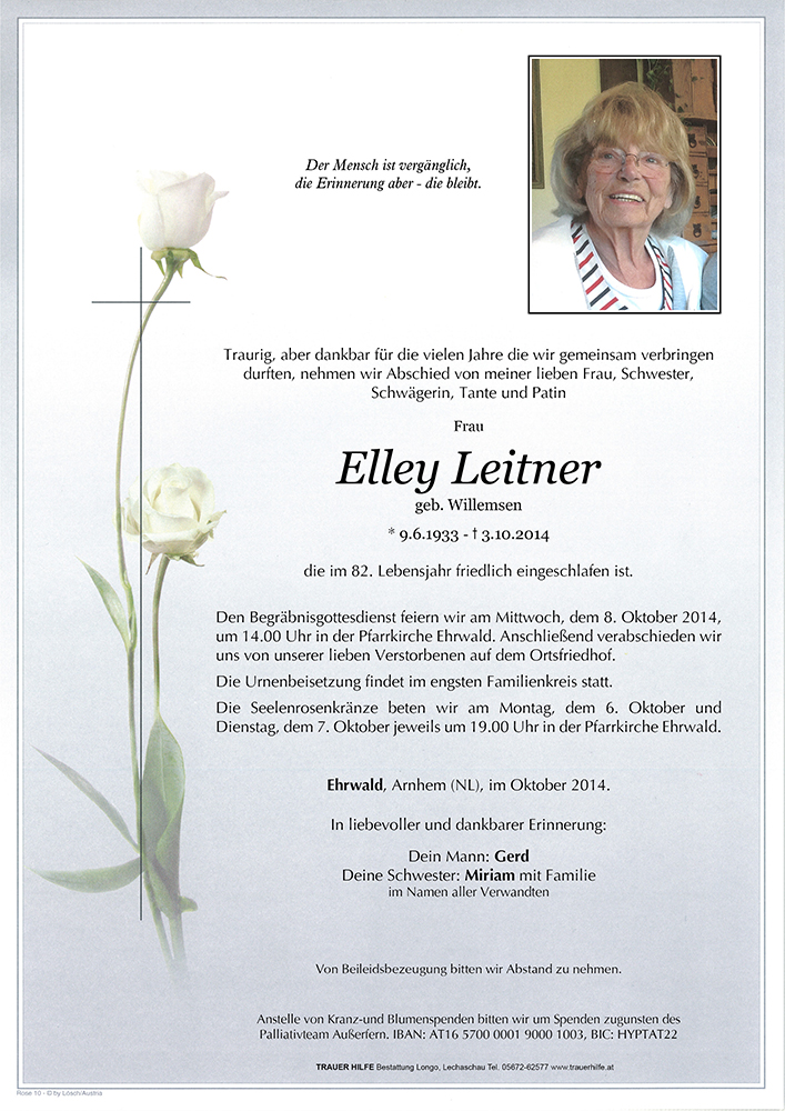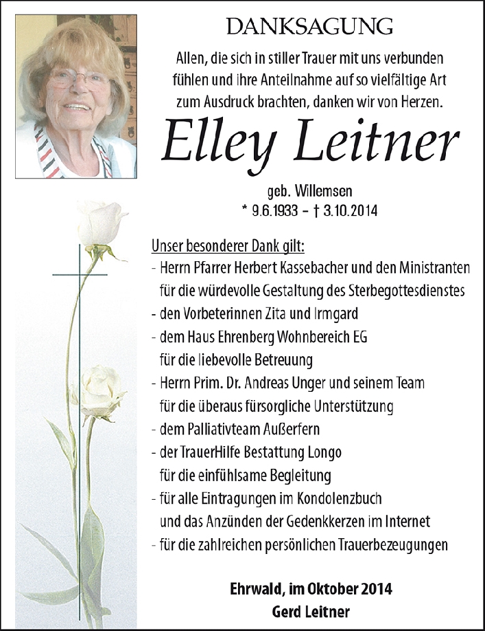 Das Leiden hat ein Ende. Wir werden Elli in lieber Erinnerung behalten.