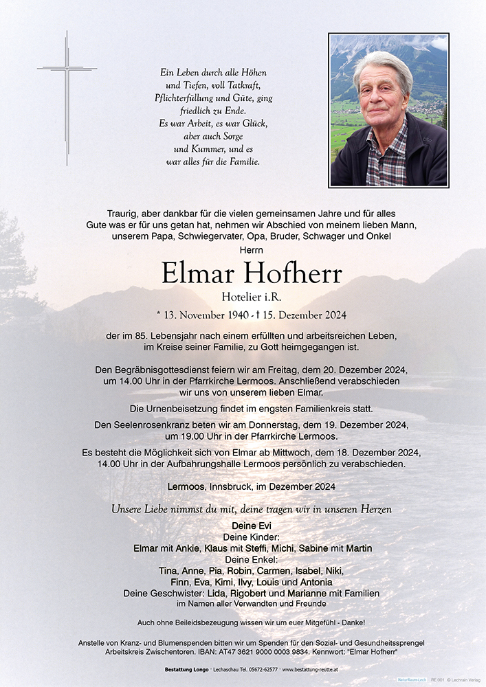 Der Fußballclub Lermoos nimmt Abschied von einem geschätzten Ehrenmitglied und großzügigen Gönner, der unseren Verein über viele Jahre hinweg treu zur Seite stand. Wir sind zutiefst dankbar für all das, was er für unseren Fußballclub geleistet hat, und werden sein Andenken in Ehren halten. In dieser schweren Zeit sprechen wir seiner Familie und allen Angehörigen unser aufrichtiges Mitgefühl aus.