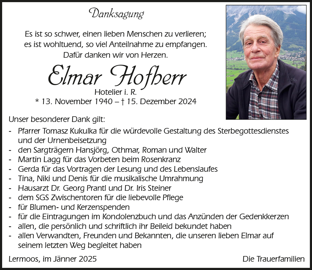 Kondolenzbuch für Elmar Hofherr
