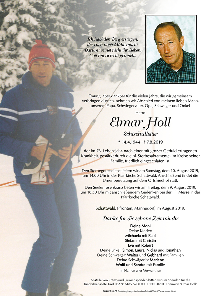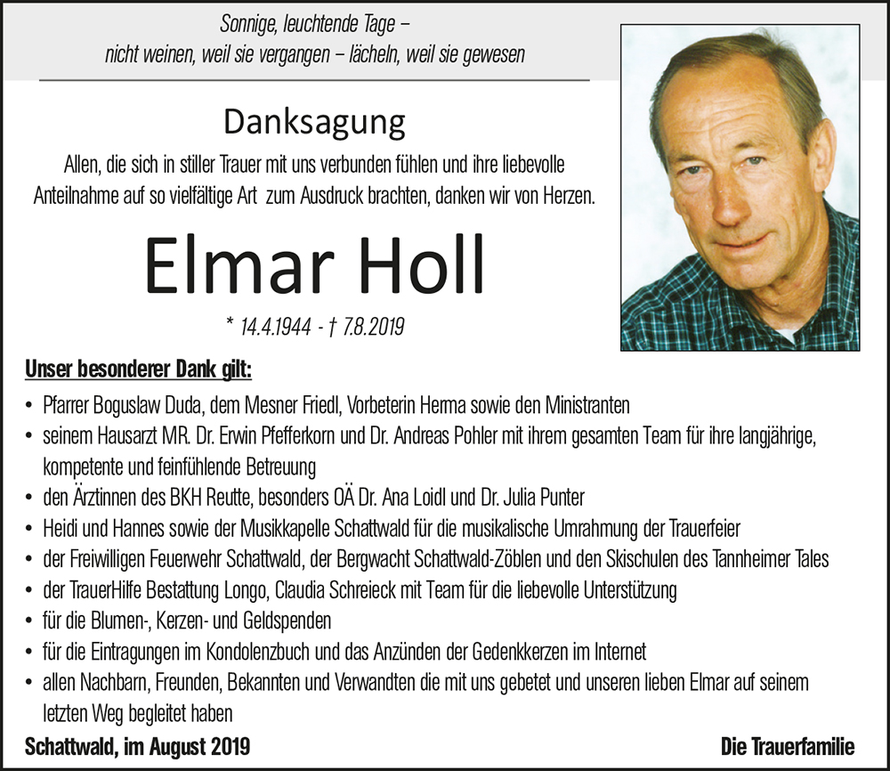 Unser herzliches Beleid. Ihr habt einen liebenswerten Mensch verloren, behaltet ihn in euren Herzen denn er ist nur vorausgegangen. Jetzt schauen Elmar und Irmgard gemeinsam auf euch herab.