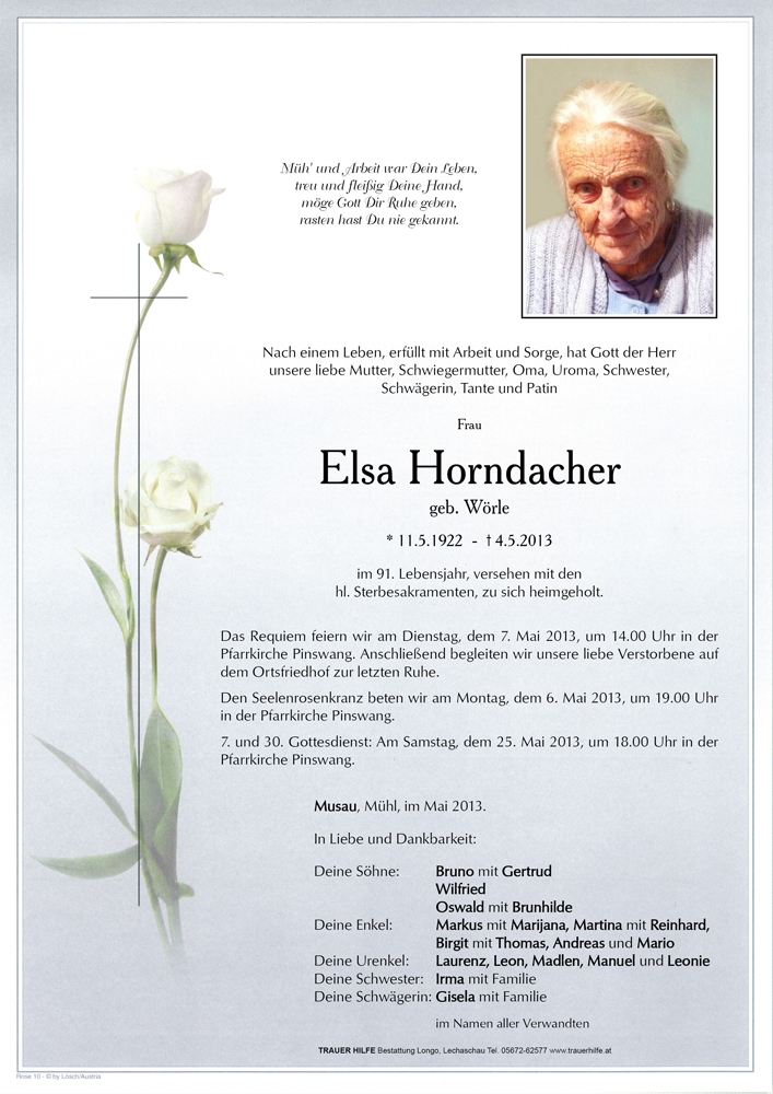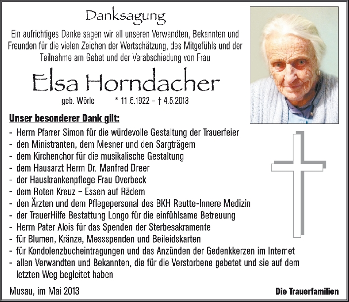Kondolenzbuch für Elsa Horndacher