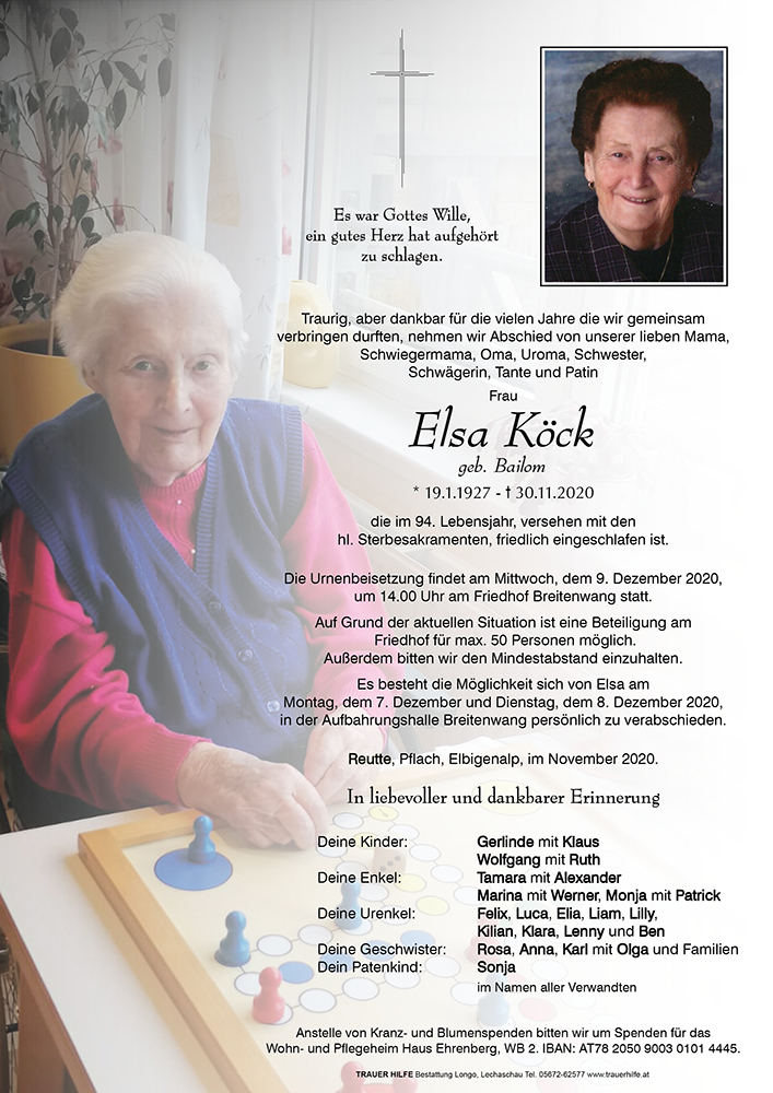 Kondolenzbuch für Elsa Köck