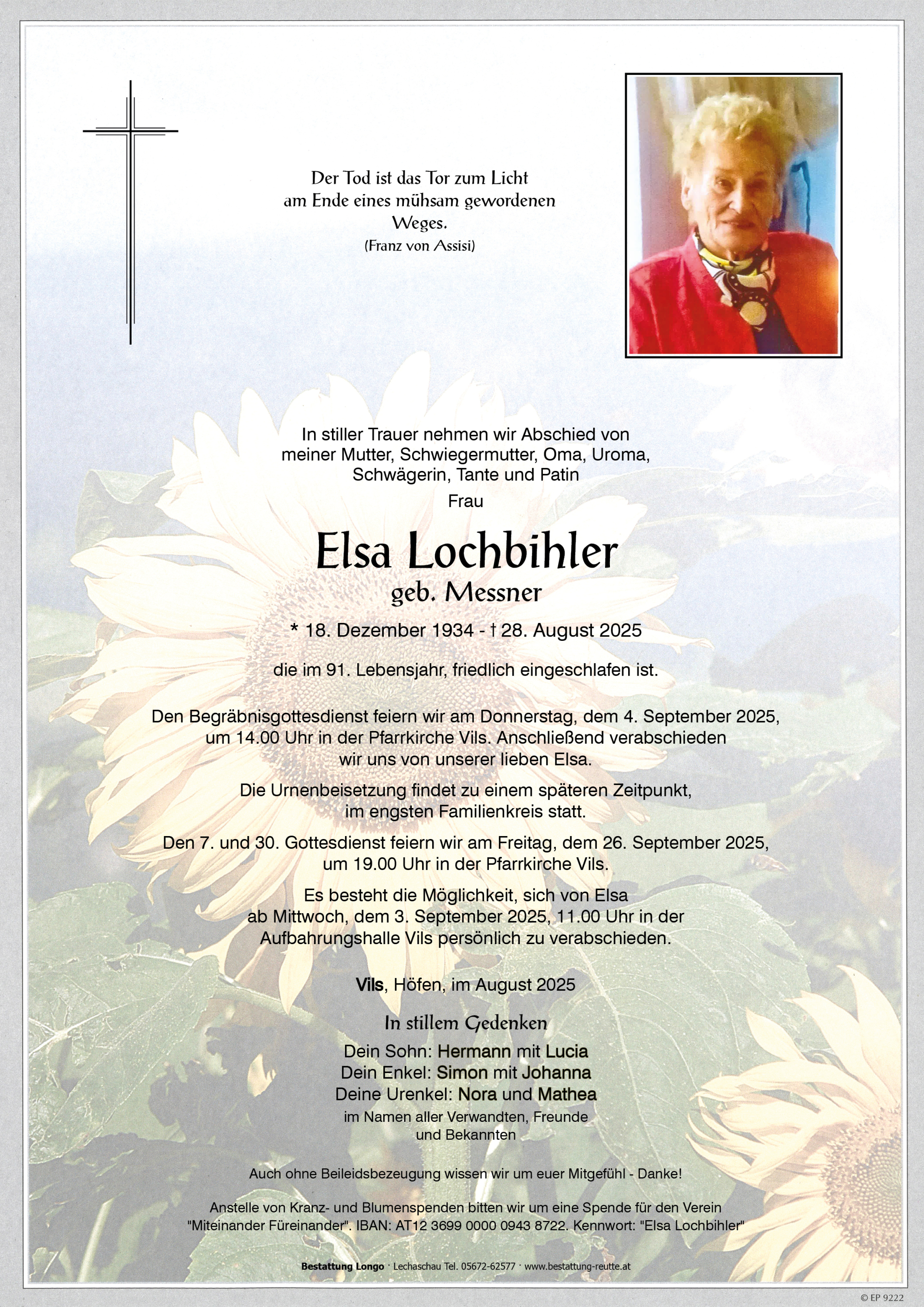 + JA - Wir freuen uns auf irgendwann auf ein Wiedersehen mit Dir, liebe Elsa, im Reiche des Herrn.