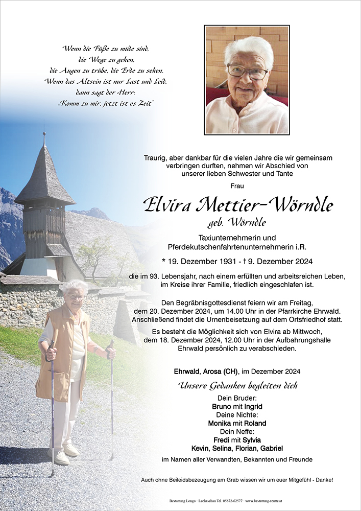 Kondolenzbuch für Elvira Mettier-Wörndle