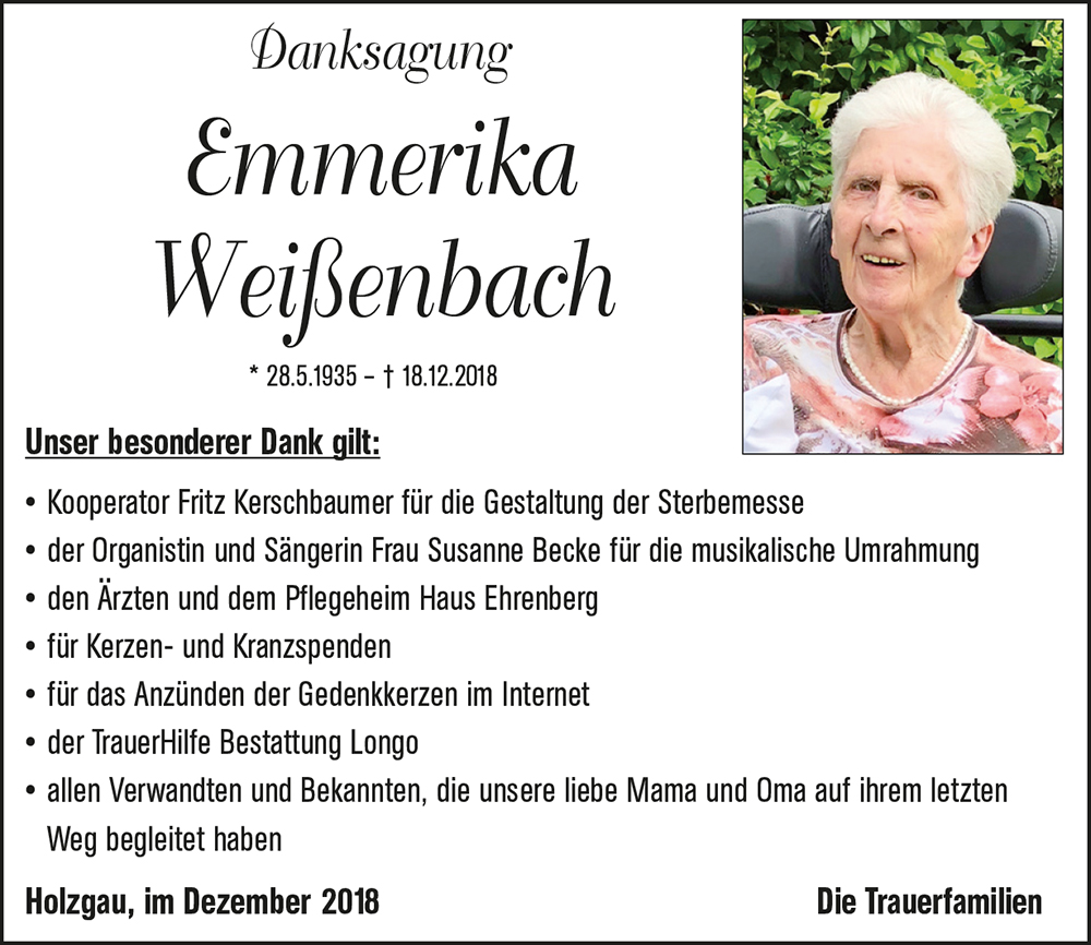 Seid dankbar für die vielen schönen Jahre und für die Erinnerung.