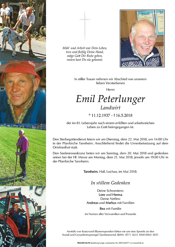 Kondolenzbuch fĂŒr Emil Peterlunger