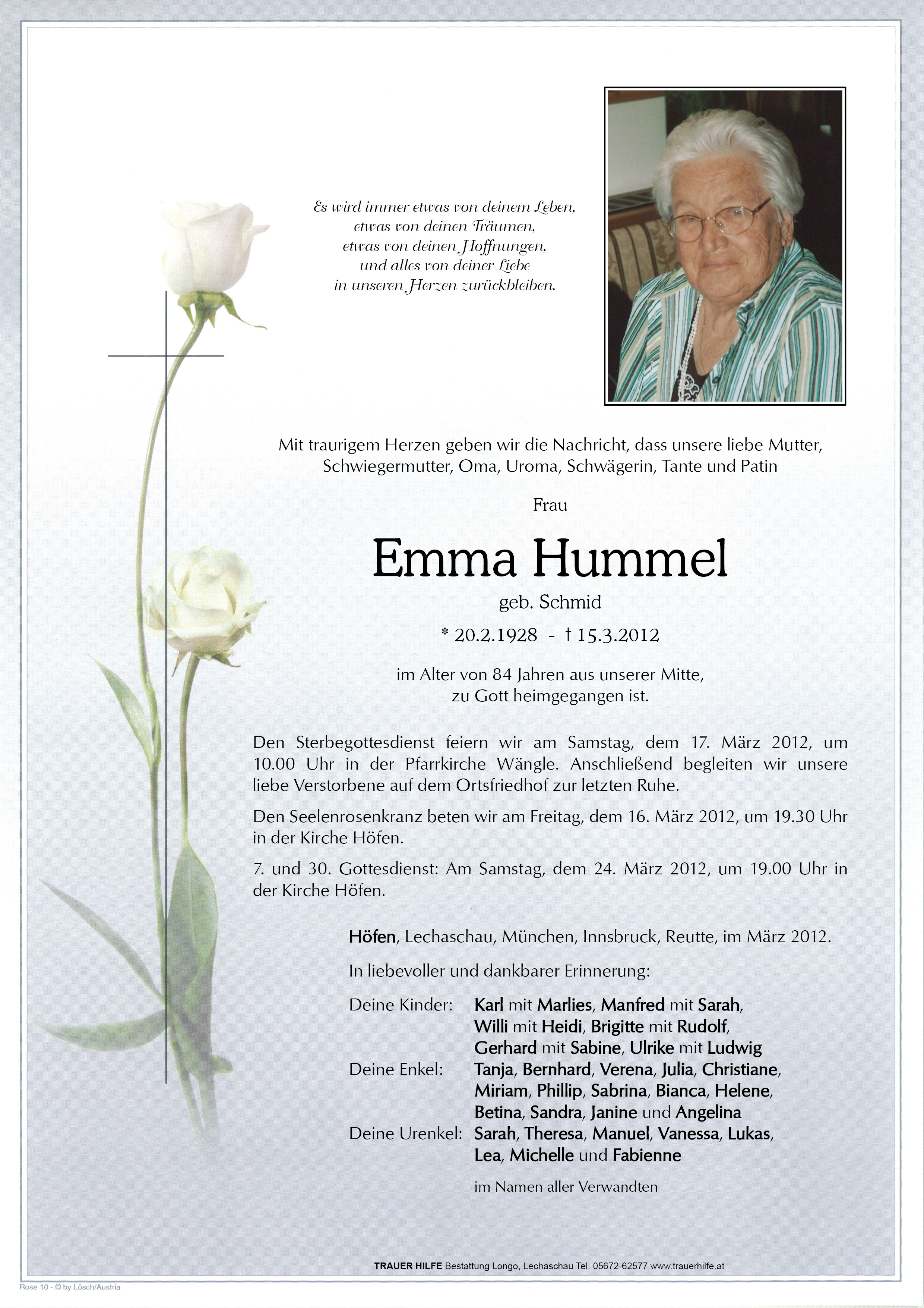 Kondolenzbuch für Emma Hummel