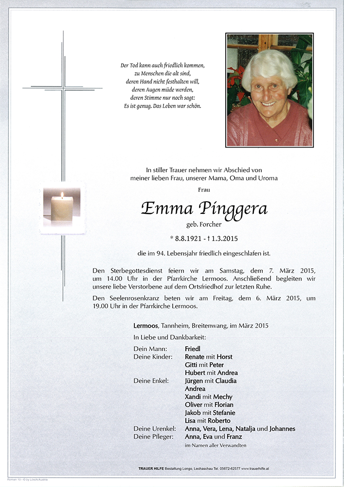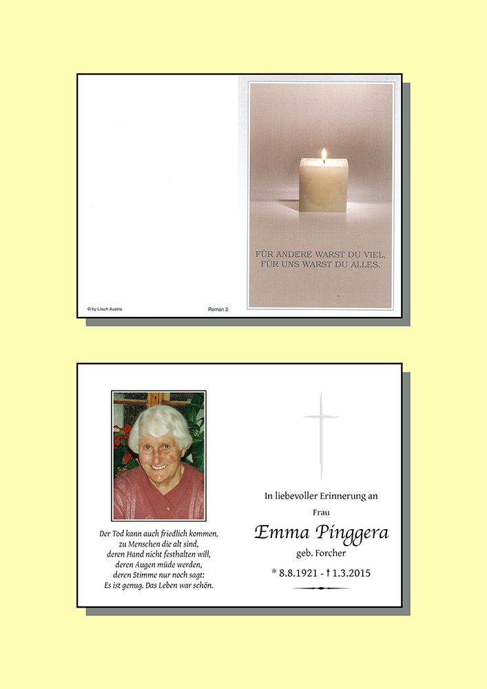 Kondolenzbuch für Emma Pinggera