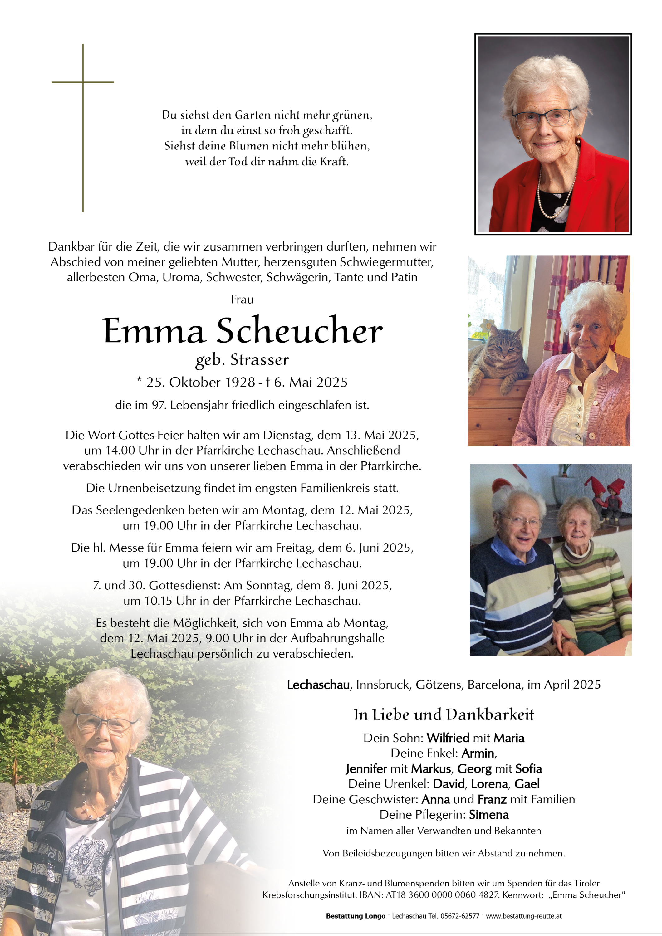 Eine kleine Zeit ihres langen Lebens durfte ich Tante Emma begleiten. Möge euch so wie mir die vielen schönen Erinnerungen Kraft und Trost spenden.