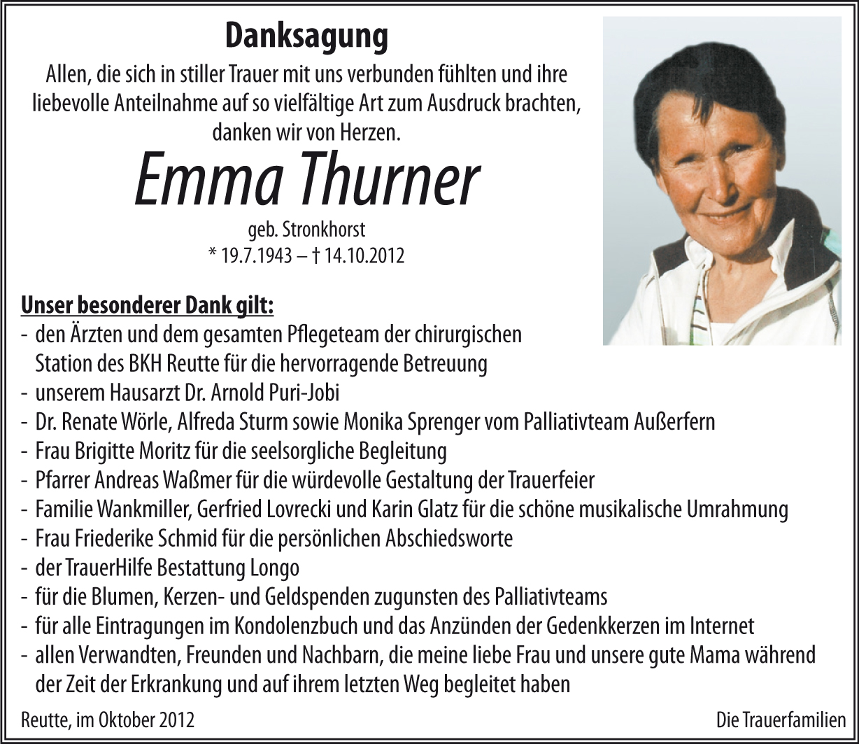 Kondolenzbuch für Emma Thurner