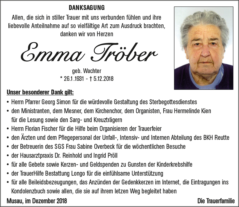 Kondolenzbuch für Emma Tröber