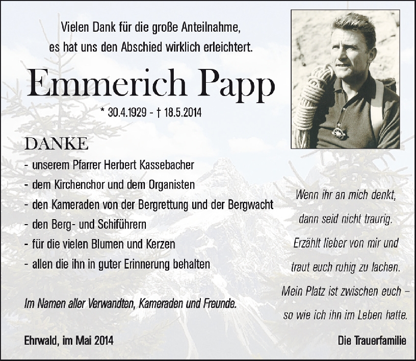 Kondolenzbuch für Emmerich Papp