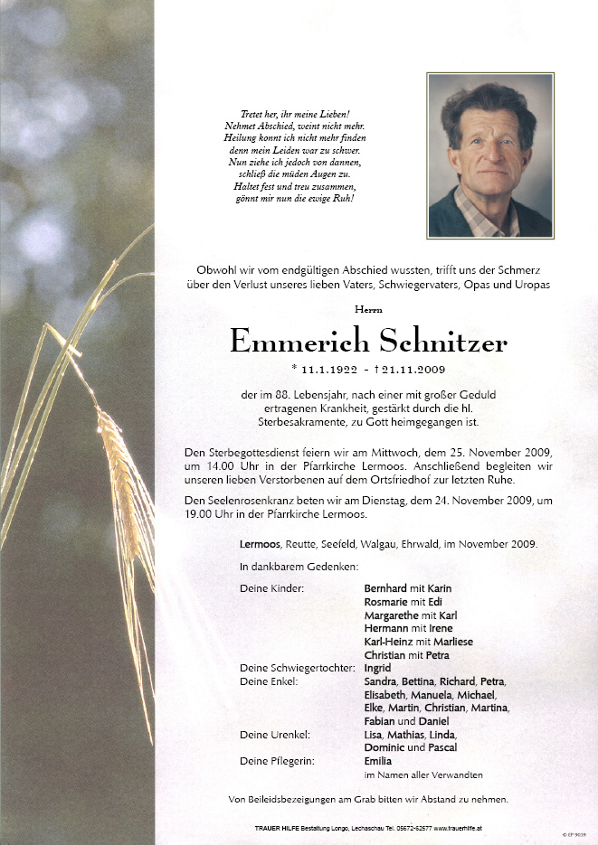 13.12.1901 21.11.2009 Lermoos Emmerich Schnitzer Action Parte Gedenkkerzen Kondolenzen Parte Gedenkkerzen Kondolenzen Parte herunterladen Gedenkkerzen für Emmerich Schnitzer 46 Einträge Kerze anzünden Weihnachtslicht und Neujahrslicht für dich Osterkerze für dich Neujahrskerze für dich Ruhe in Frieden Ein Licht für dich von uns..... Im stillen Gedenken Im stillen Gedenken Ruhe in Frieden Ruhe in Frieden Weihnachtslicht für dich In lieber Erinnerung ❤️ von uns allen... Ein Osterlicht für dich Weihnachtslicht ....wir denken an euch..... von uns daheim Von uns. . . für dich "die Ehrwalder" Osterkerze du fehlst, , bist in unseren herzen Christian und Petra Fabi u Christi Wir denken an dich von uns - für dich Du bleibst Margit und Emil Fabian u. Christian Christian u. Petra Ein Licht von uns A Liachtl für di wir denken an dich In Liebe von uns In Liebe von uns In dankbarer Erinnerung ein Weihnachtslichtl Du bist in unseren Herzen Christian , Petra, Fabian, Chris Christian u. Petra, Fabian und für OPA Wir denken an dich In Liebe Christian u. Petra wir denken an dich Opa In Liebe Wir denken an dich! ! Christian und Petra Wir denken an dich , Opa In Liebe Christian u. Petra Andreas, Renate, Lisa und Johannes Ihre Gedenkkerze fürEmmerich Schnitzer Ihr Name* Farbe auswählen Ihre Nachricht oder Name* E-Mail-Adresse* Mit dem Klicken auf "Kerze anzünden" erklären Sie sich mit unseren Datenschutzbestimmungen einverstanden. Kondolenzbuch für Emmerich Schnitzer 0 Einträge Kondolenz verfassen Ihr Abschiedsgruß an Emmerich Schnitzer Ihr Name* E-Mail-Adresse* Ihre Nachricht* Mit dem Klicken auf "Gruß absenden" erklären Sie sich mit unseren Datenschutzbestimmungen einverstanden.