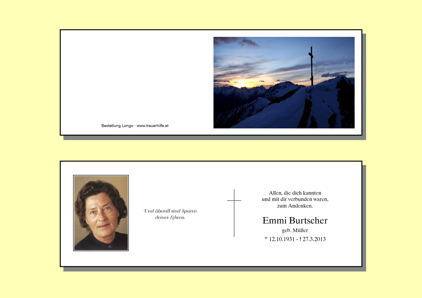 Kondolenzbuch fĂŒr Emmi Burtscher