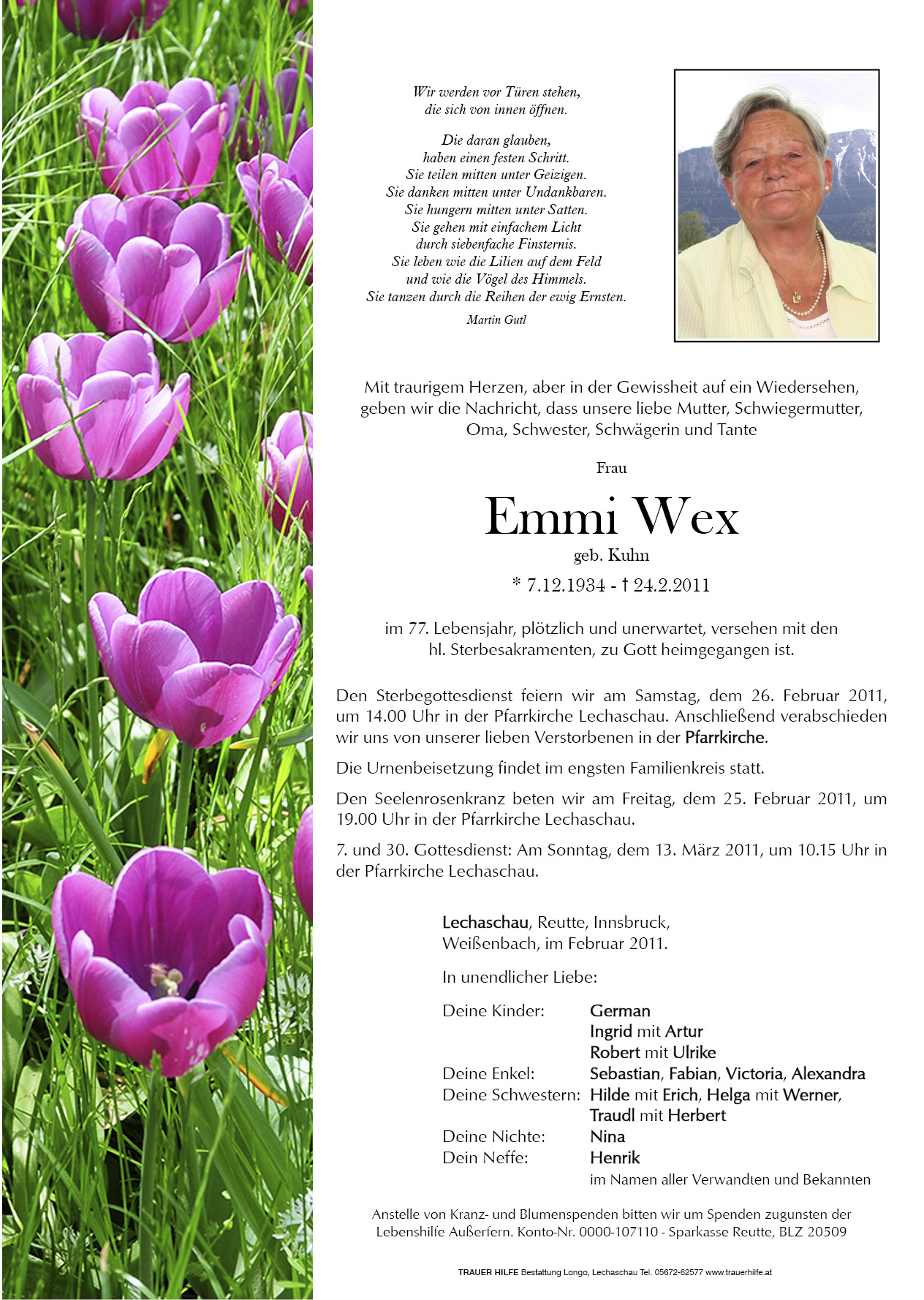 13.12.1901 24.02.2011 Lechaschau Emmi Wex Action Parte Sterbebild Gedenkkerzen Kondolenzen Danksagung Parte Sterbebild Gedenkkerzen Kondolenzen Danksagung Parte herunterladen Sterbebild herunterladen Gedenkkerzen für Emmi Wex 14 Einträge Kerze anzünden Alexandra Hannes Hannes Ruhe sanft in Gottes Hand! Ein Licht für die Ewigkeit! Hannes mit Familie Unvergessen Anita Wachter Ein Licht für dich Herr gib Ihr die ewige Ruhe. . . Hannes mit Familie Hannes mit Familie Ulli Müller Die Erde sei dir leicht! Anita Hannes mit Familie Ihre Gedenkkerze fürEmmi Wex Ihr Name* Farbe auswählen Ihre Nachricht oder Name* E-Mail-Adresse* Mit dem Klicken auf "Kerze anzünden" erklären Sie sich mit unseren Datenschutzbestimmungen einverstanden. Kondolenzbuch für Emmi Wex 0 Einträge Kondolenz verfassen Ihr Abschiedsgruß an Emmi Wex Ihr Name* E-Mail-Adresse* Ihre Nachricht* Mit dem Klicken auf "Gruß absenden" erklären Sie sich mit unseren Datenschutzbestimmungen einverstanden. Danksagung herunterladen