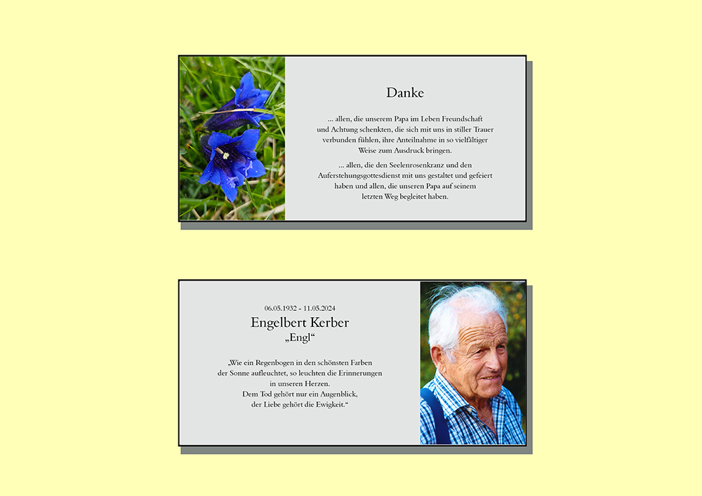 Aufrichtige Anteilnahme am Heimgang Eures guten Vaters, Großvaters, Urgroßvaters und Bruders, entbieten Ingrid Kraxner mit Familie!