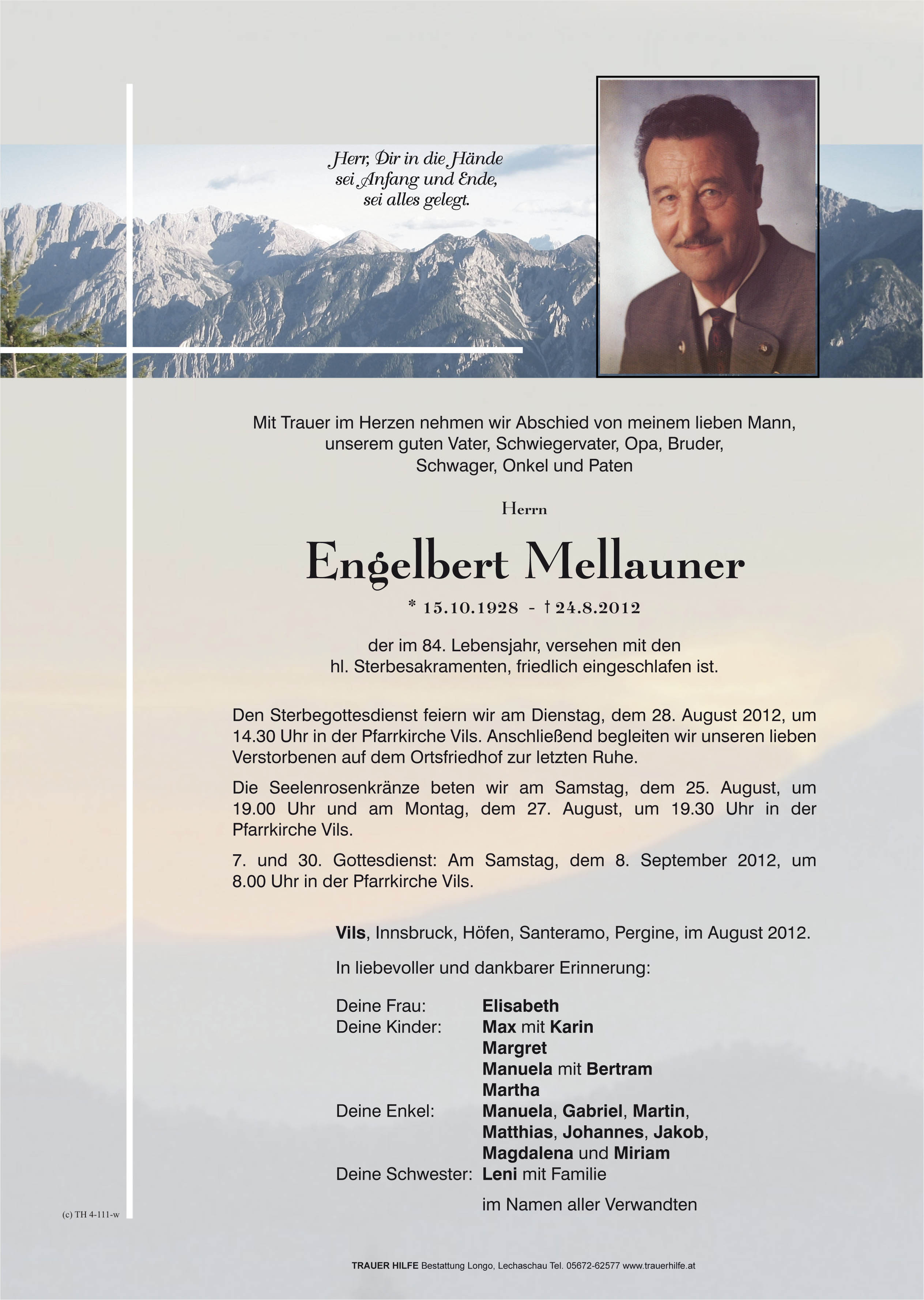 Kondolenzbuch für Engelbert Mellauner
