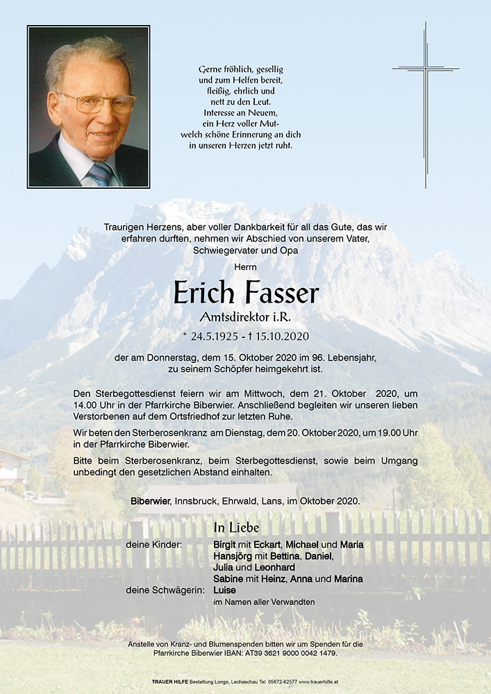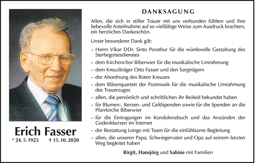 Kondolenzbuch für Erich Fasser
