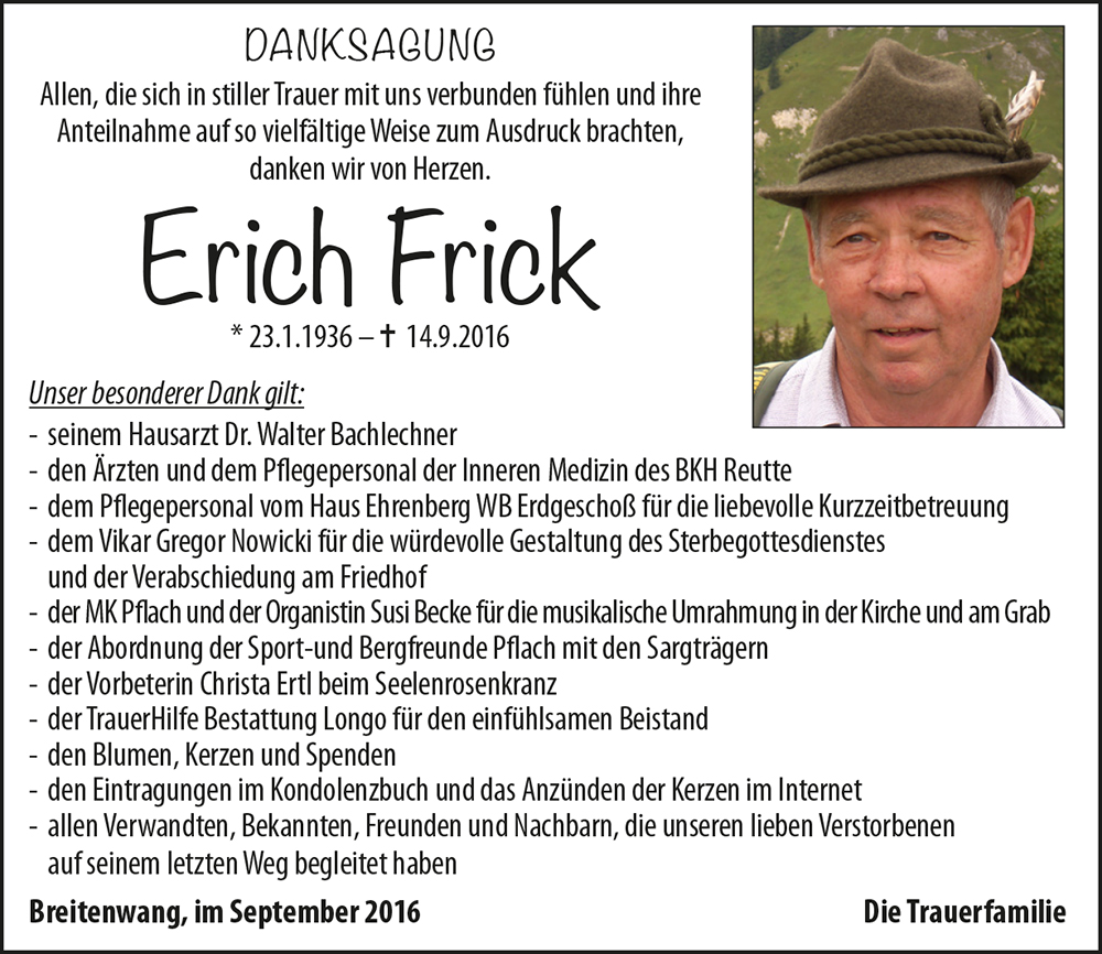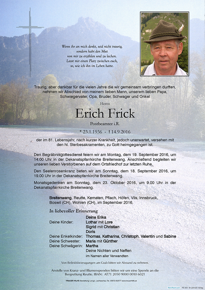 möge der Schmerz über den Tod von Erich euch nicht erdrücken und euch die Erinnerung an die gemeinsame Zeit genügend Kraft für die Zukunft geben.