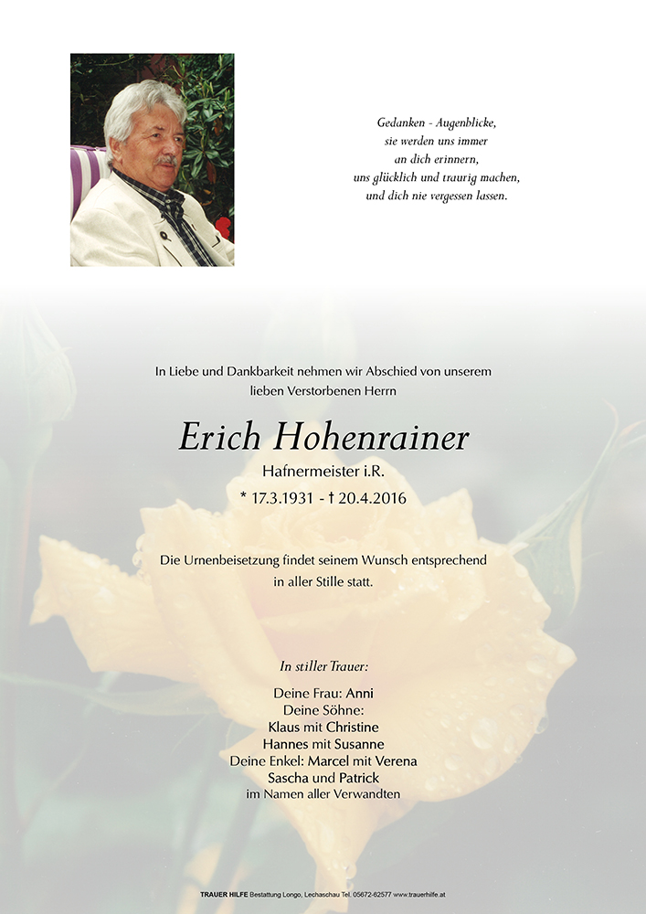 Lieber Hannes unser aufrichtiges Beleid wünscht dir Hans mit Familie.