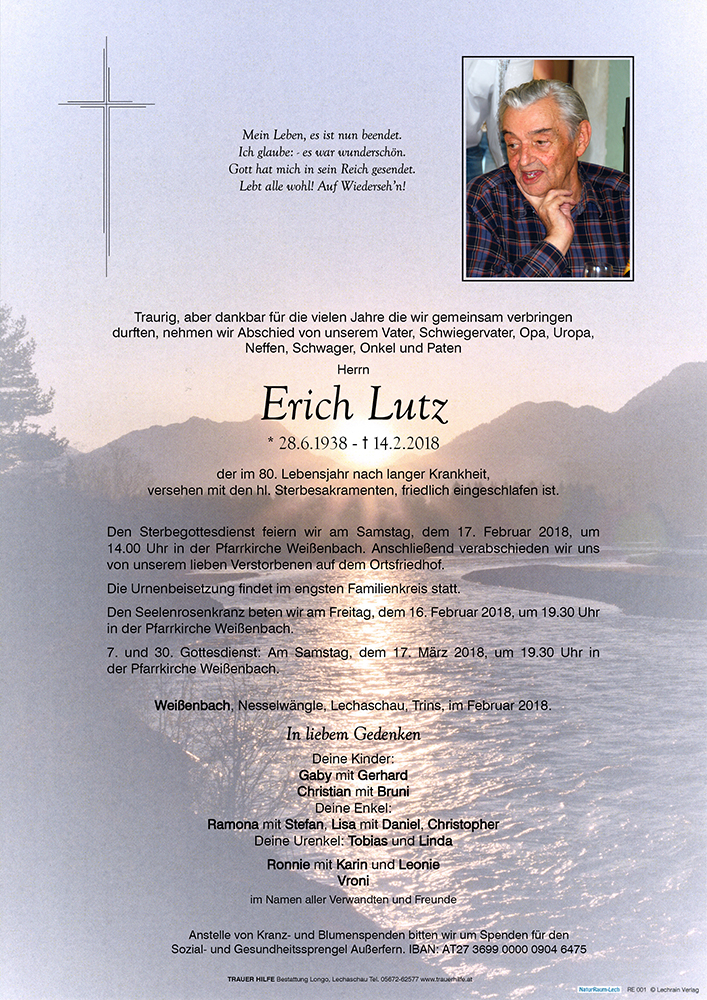 Kondolenzbuch für Erich Lutz