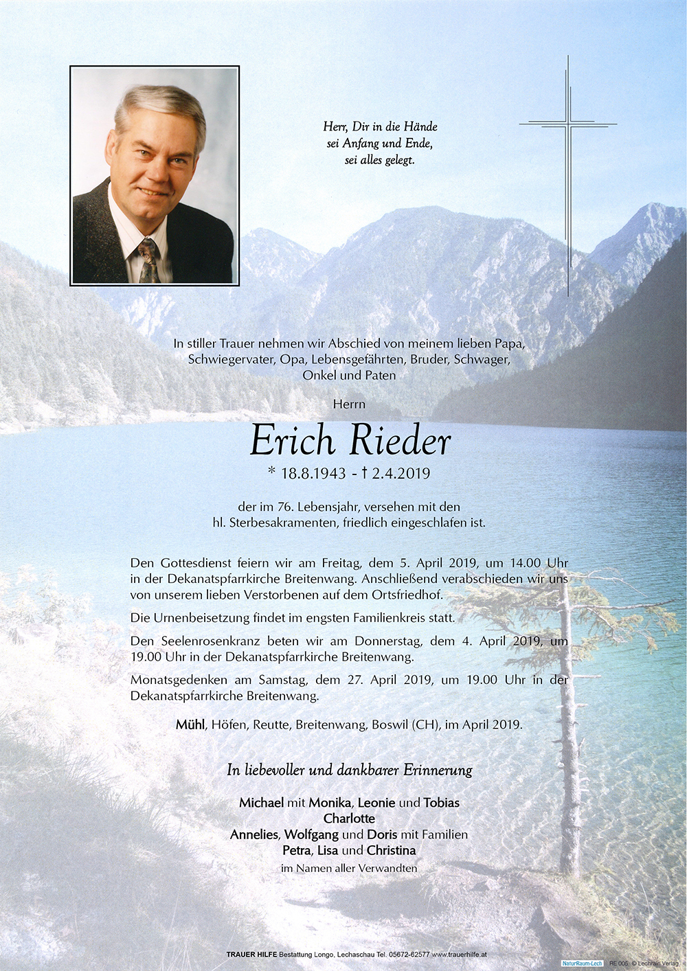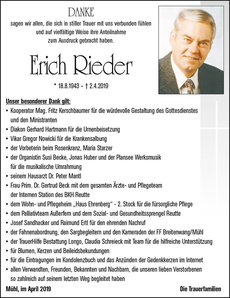 Kondolenzbuch für Erich Rieder