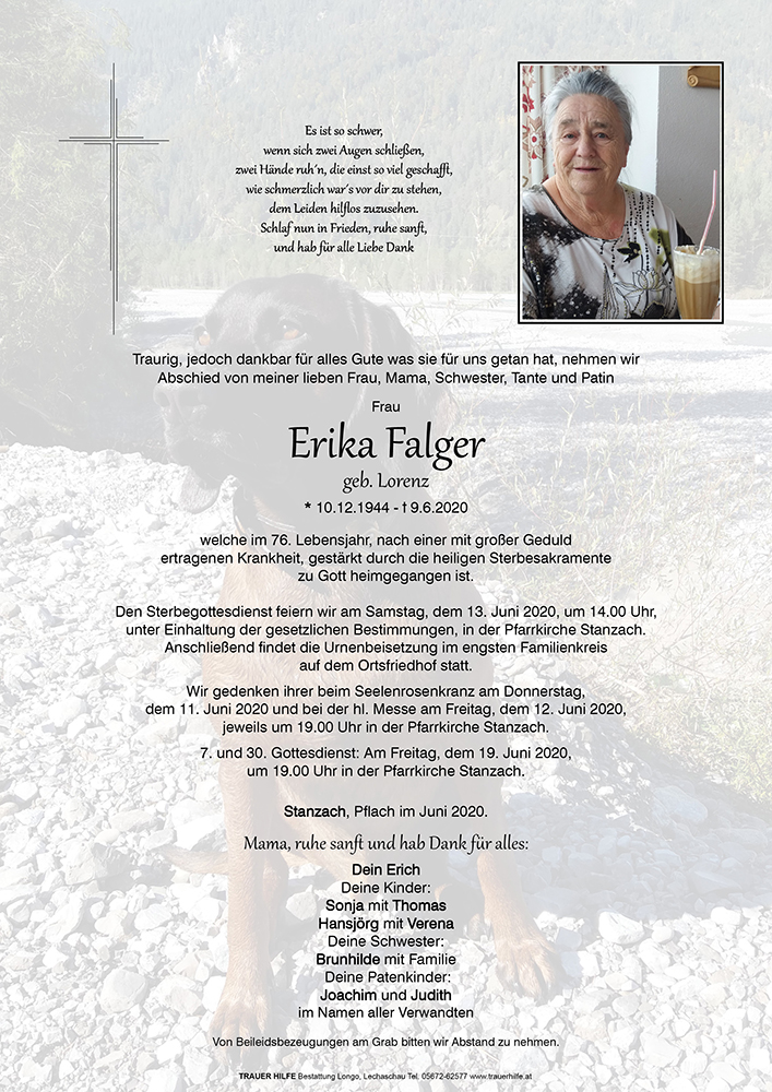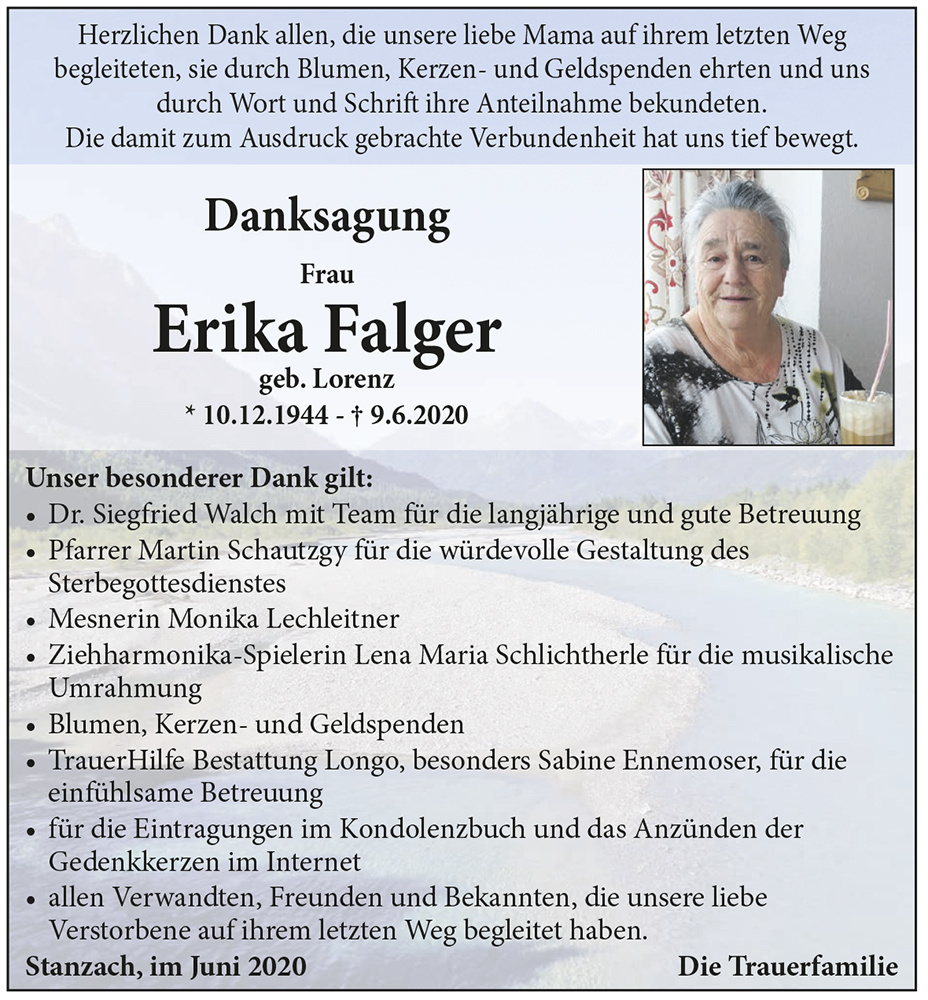 Kondolenzbuch für Erika Falger