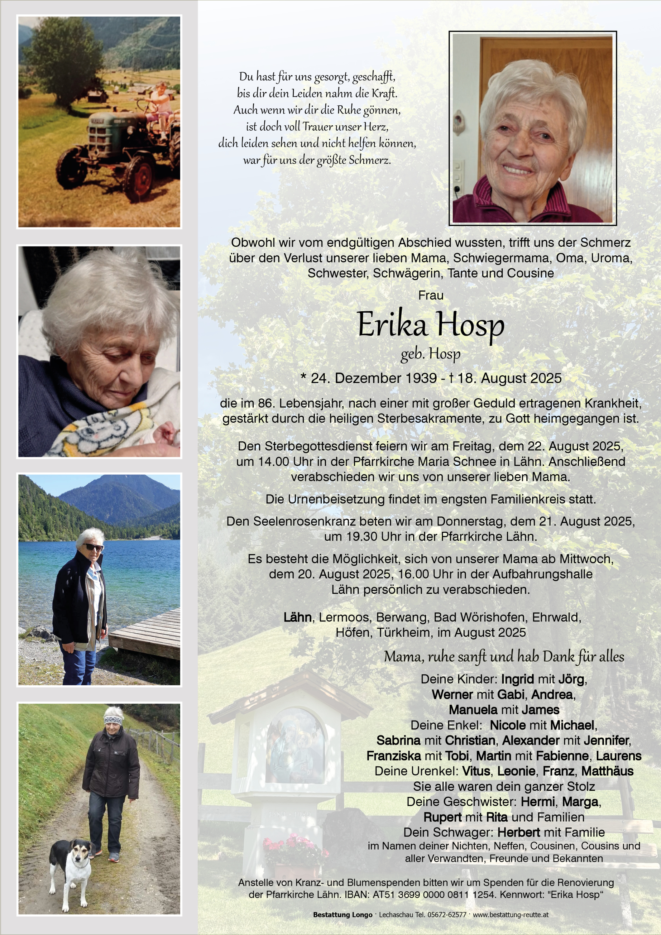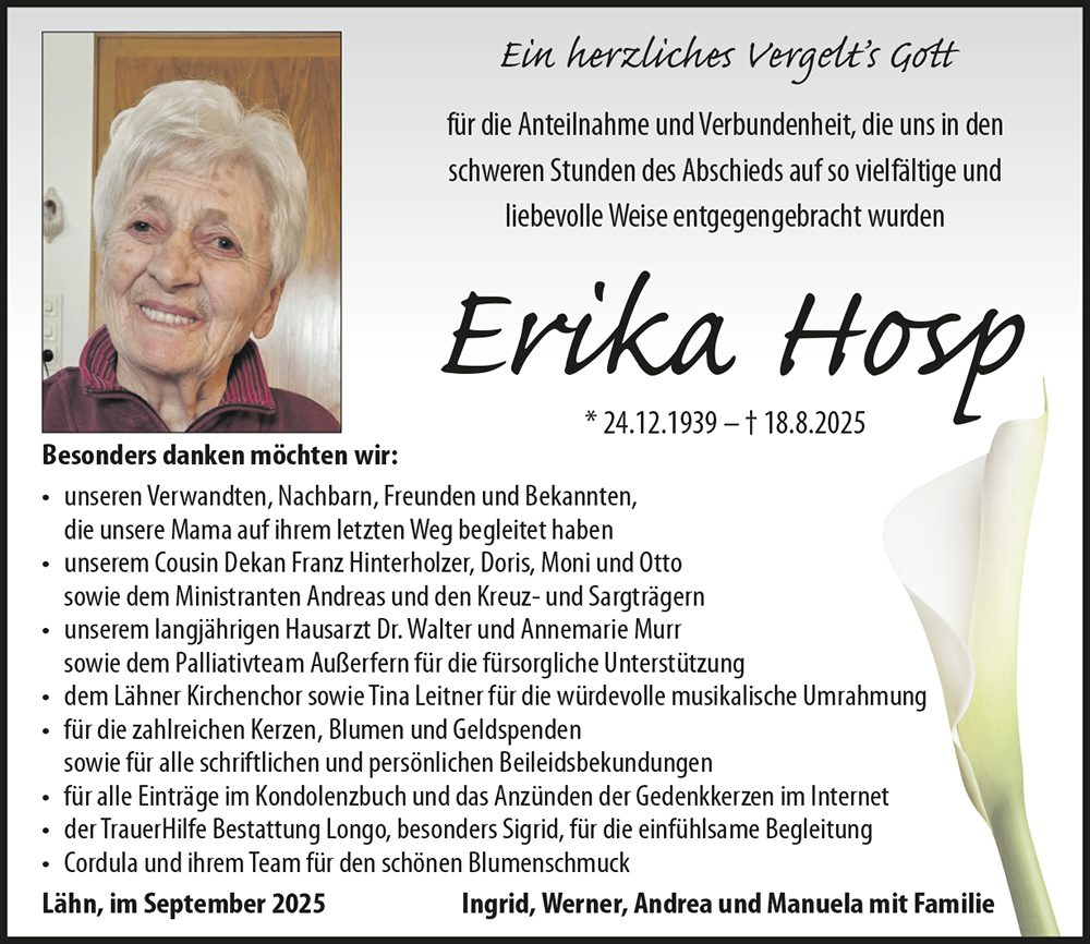 Kondolenzbuch für Erika Hosp
