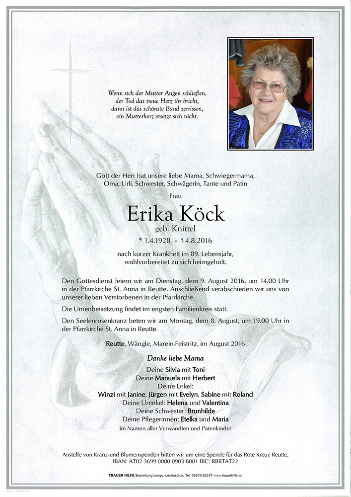 Kondolenzbuch für Erika Köck