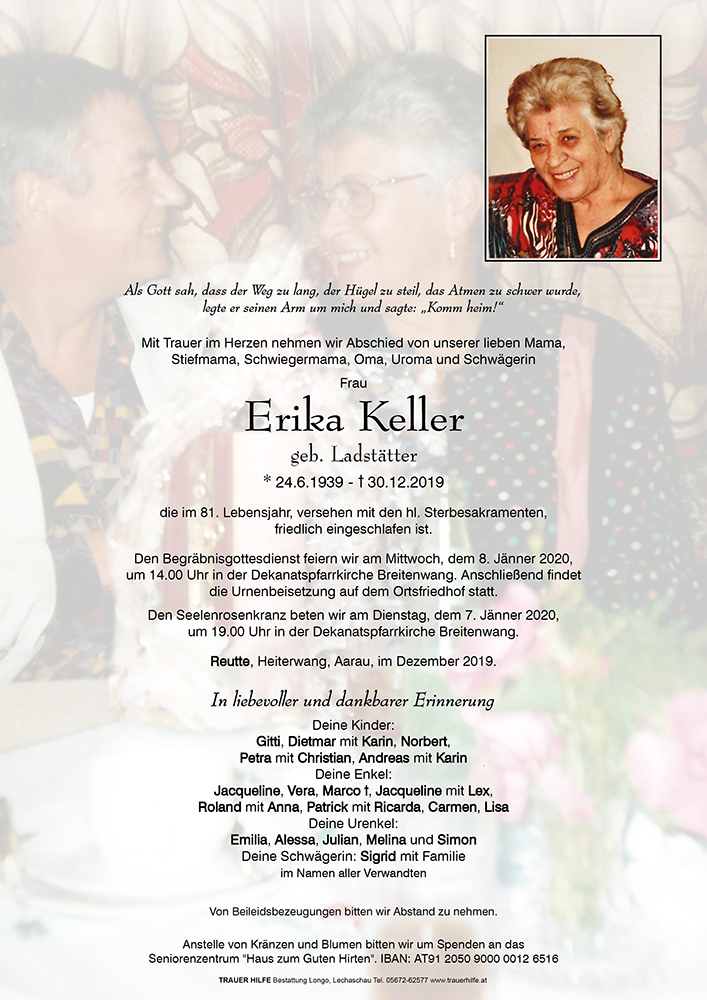 Kondolenzbuch für Erika Keller