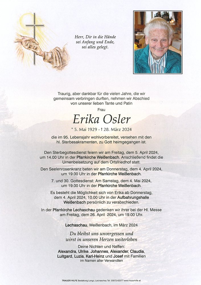 Liebe Erika ich kannte dich schon von 1960 mit unserer Jugendarbeit zusammen. Wir haben viel in die Jugend investiert, damals war ich in Stanzach.