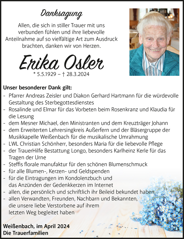 innige Anteilnahme mit euch und in Dankbarkeit mit Erika!