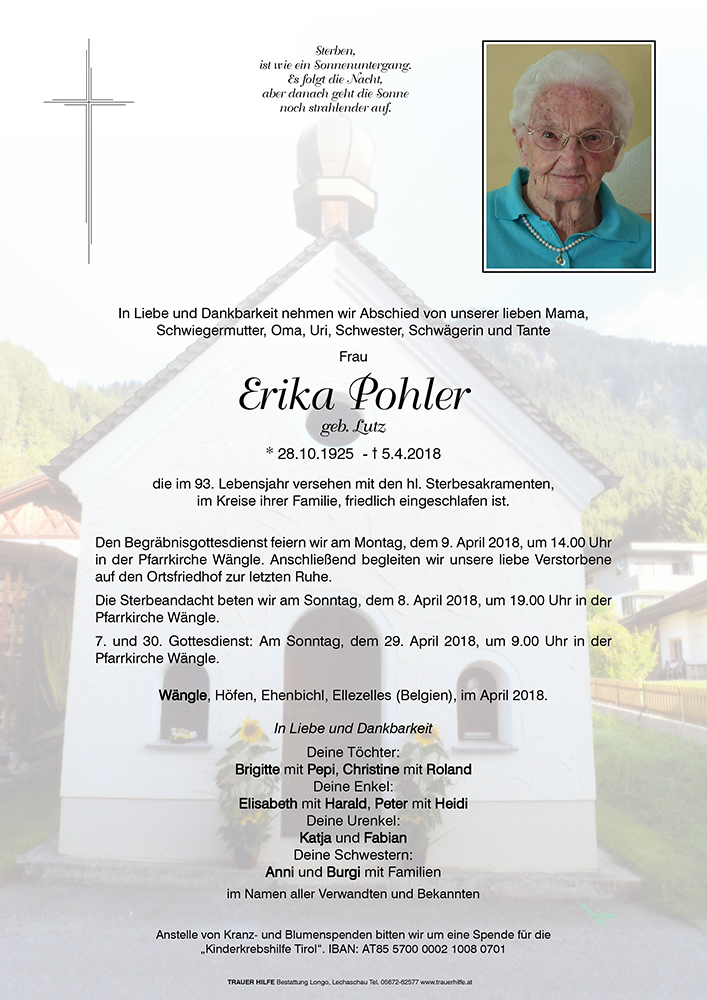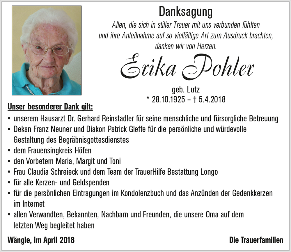 im Namen meiner Mama und damit auch des Jahrgangs 1925 unsere herzliche Anteilnahme am Heimgang eurer lieben Erika!