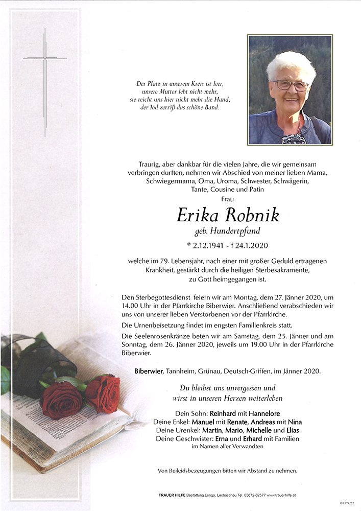 Mit Erika ist eine eine feine Frau, und fĂźr uns eine gute Nachbarin von uns gegangen wir werden ihr ein ehrendes Andenken bewahren.