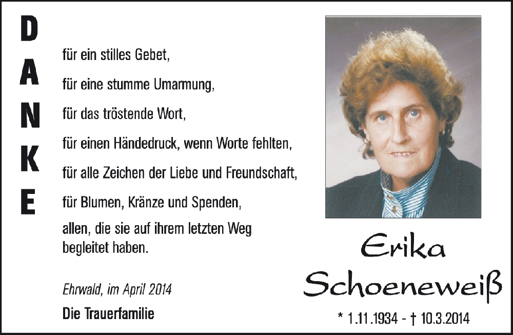 Kondolenzbuch für Erika Schoeneweiß