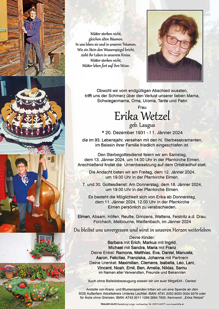 Wir hoffen, dass alle gemeinsamen Erinnerungen auch ein wenig trösten
